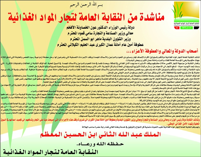 - اجراءات تعسفية تهدد بنقص اللحوم في الزرقاء