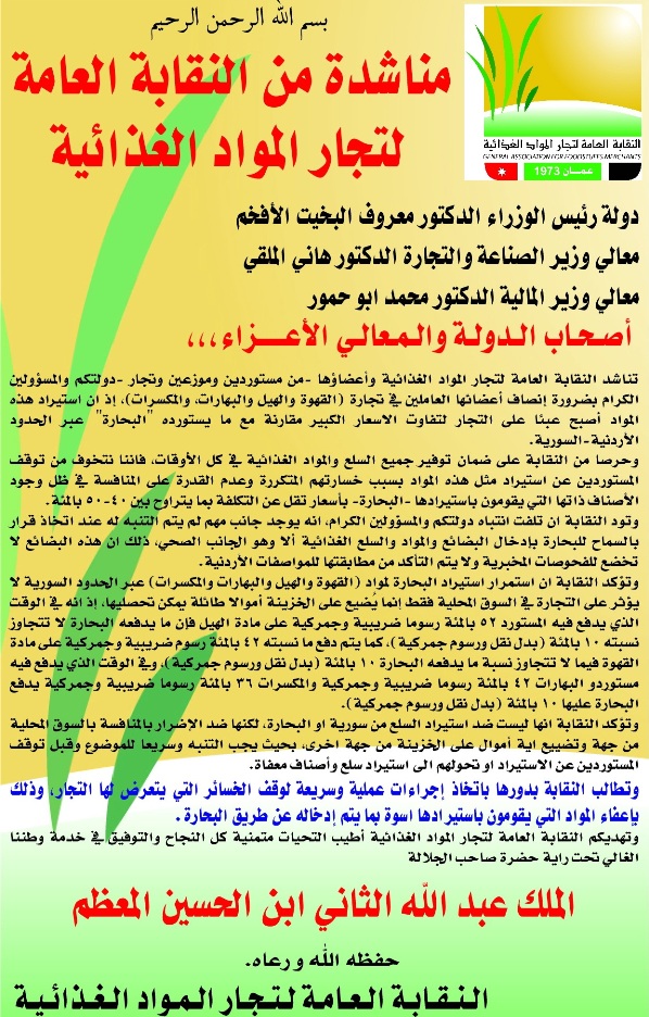 - النقابة تطالب اعفاء جميع السلع الغذائية