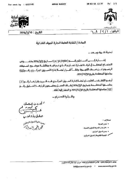 يتشرف أعضاء مجلس الإدارة بدعوتكم لحضور اجتماع الهيئة العامة العادي السنوي الذي سيعقد في تمام الساعة السادسة من مساء يوم الأربعاء الموافق 9/ 4 /2014 في غرفة تجارة عمان / القاعة الشرقية ، كما ارجوا إعلامكم بالأمور المدرجة على جدول الأعمال أدناه حسب النظام الداخلي للنقابة :-